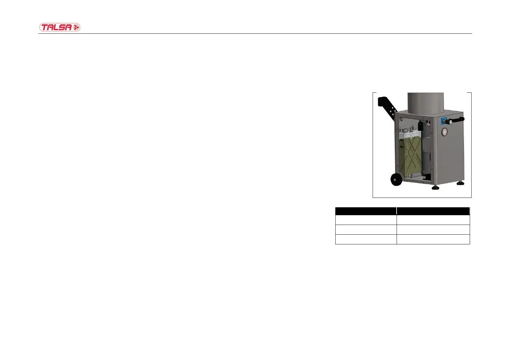 ■ Hydraulic oil life: Talsa cannot provide accurate data on the life of the oil, because it depends on several variable factors: temperature, operating