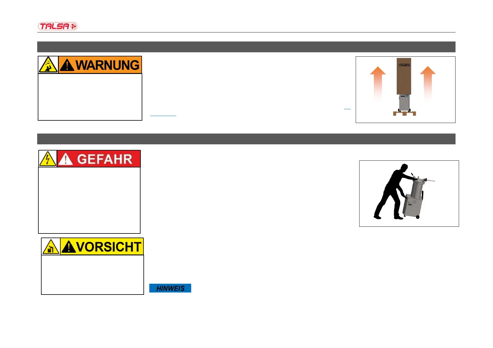 (Aufstellen) um den Kolbenfüller sicher in einen geeigneten Arbeitsbereich zu transportieren.