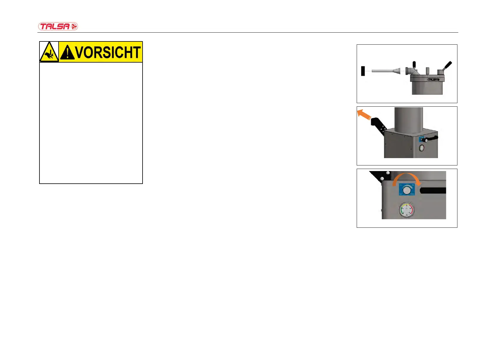 15. Sobald das Füllgut aus dem Füllrohr austritt, nehmen Sie bitte den Druck zurück und ziehen