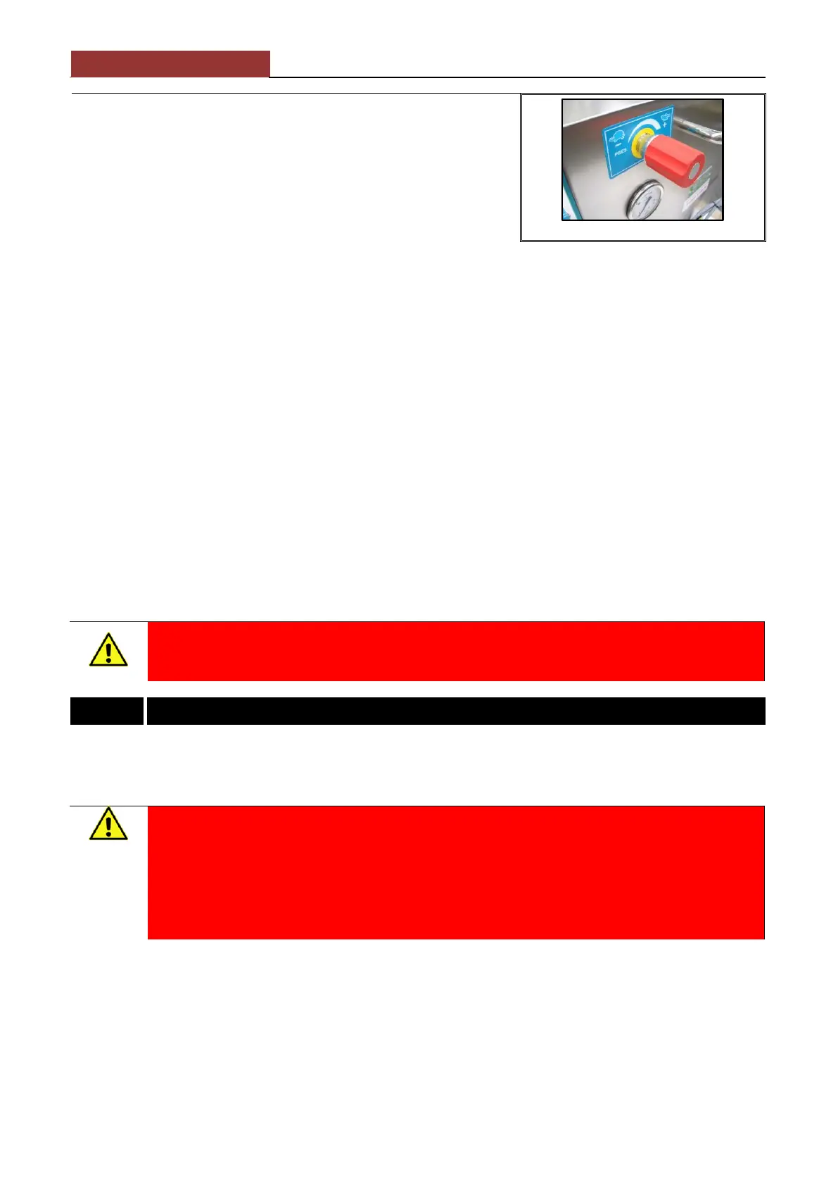 In order to avoid injury (crushing or pinching of hands, fingers, etc.) during cleaning operations and piston