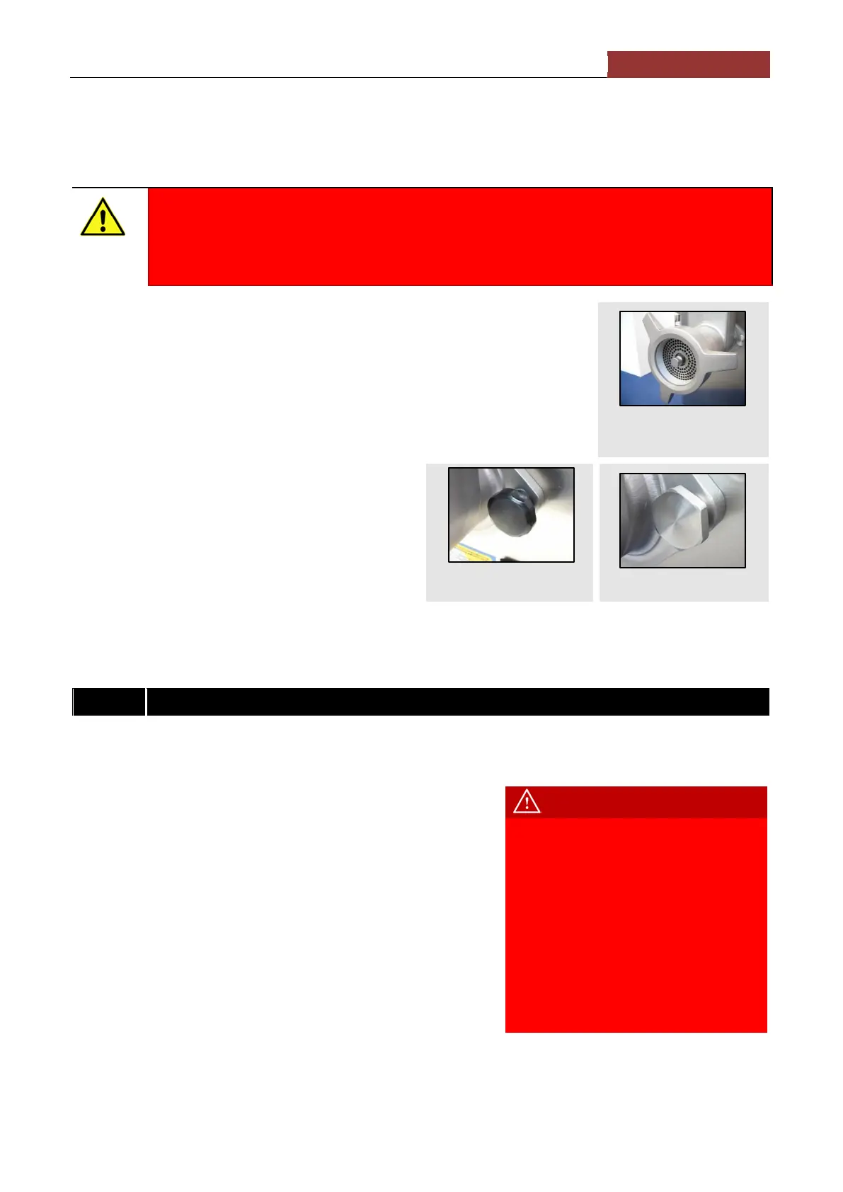 • Das Schneckengehäuse muss dabei stets fest mit dem Fleischwolf verbunden sein. Bitte beachten Sie die