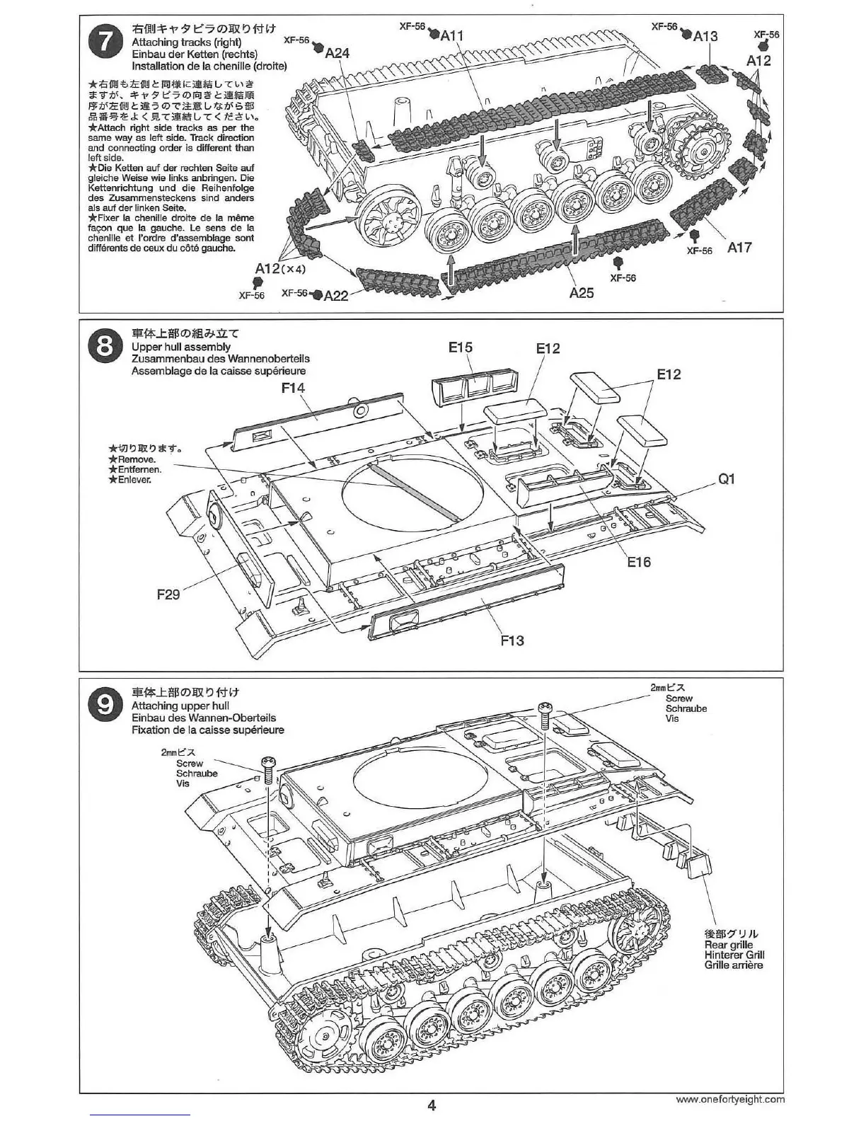 Tamiya 35215 - Attaching Tracks (Right); Upper Hull Assembly; Attaching Upper Hull