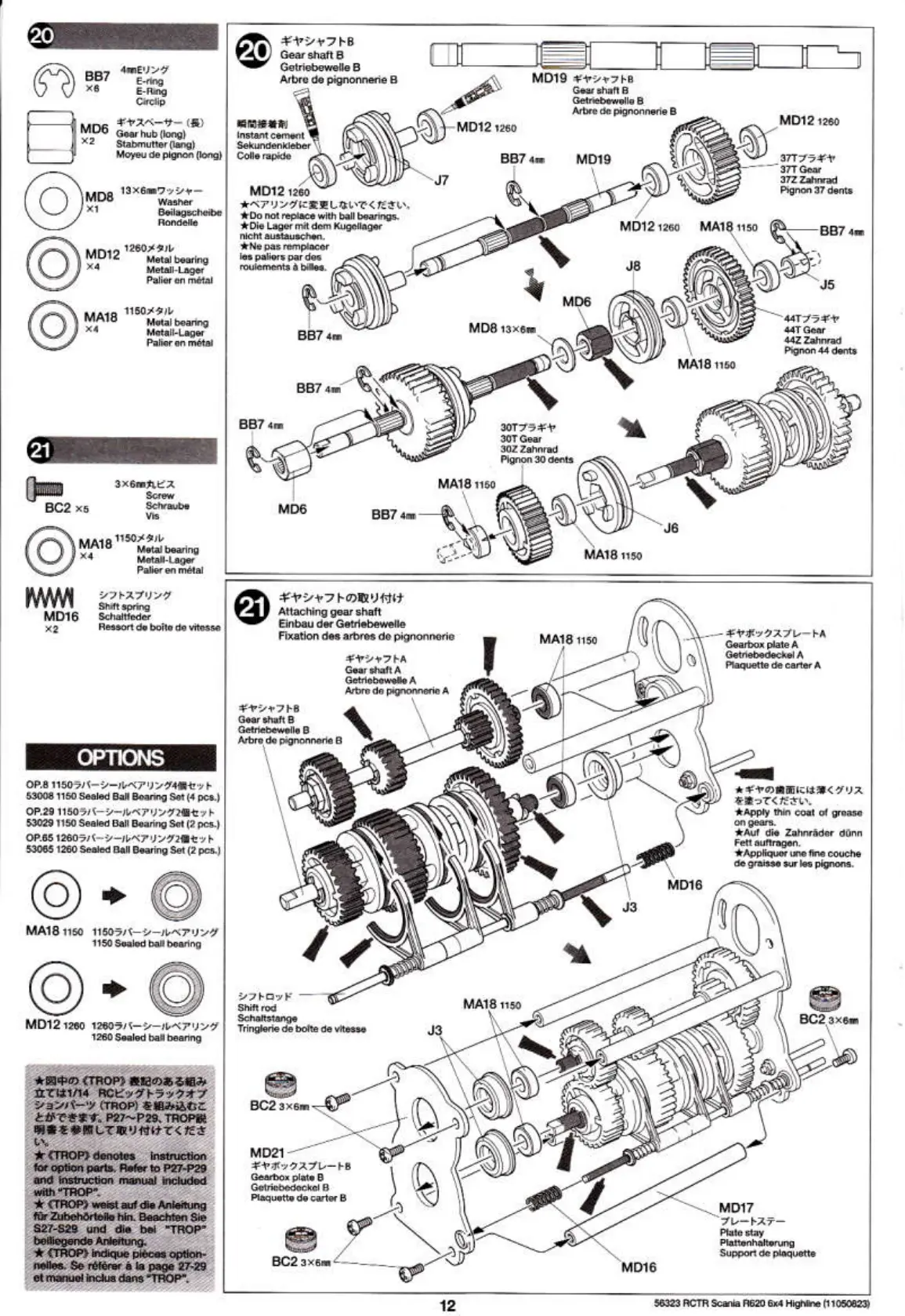Tamiya 56323 - Gear Shaft Installation; Gear Shaft B Installation; Gear Shaft A Installation