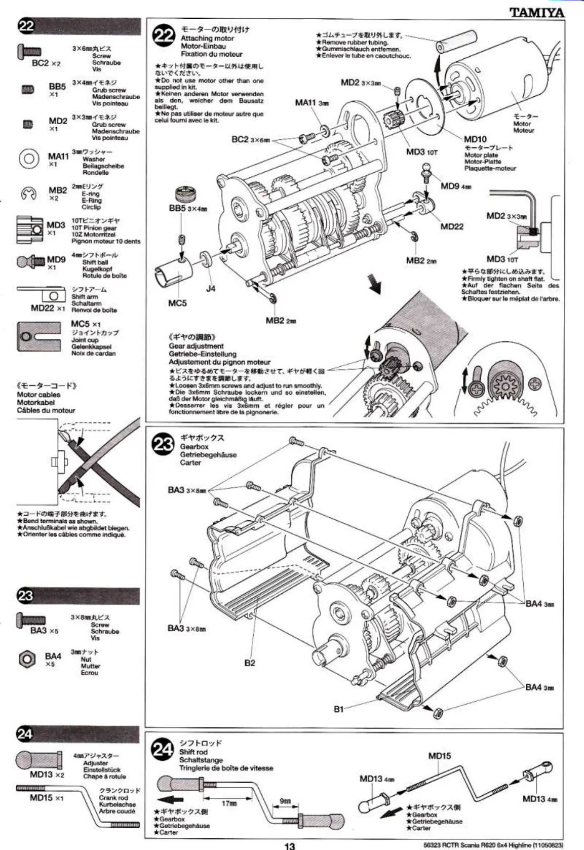 Tamiya 56323 - Motor Installation; Gear Adjustment Procedure
