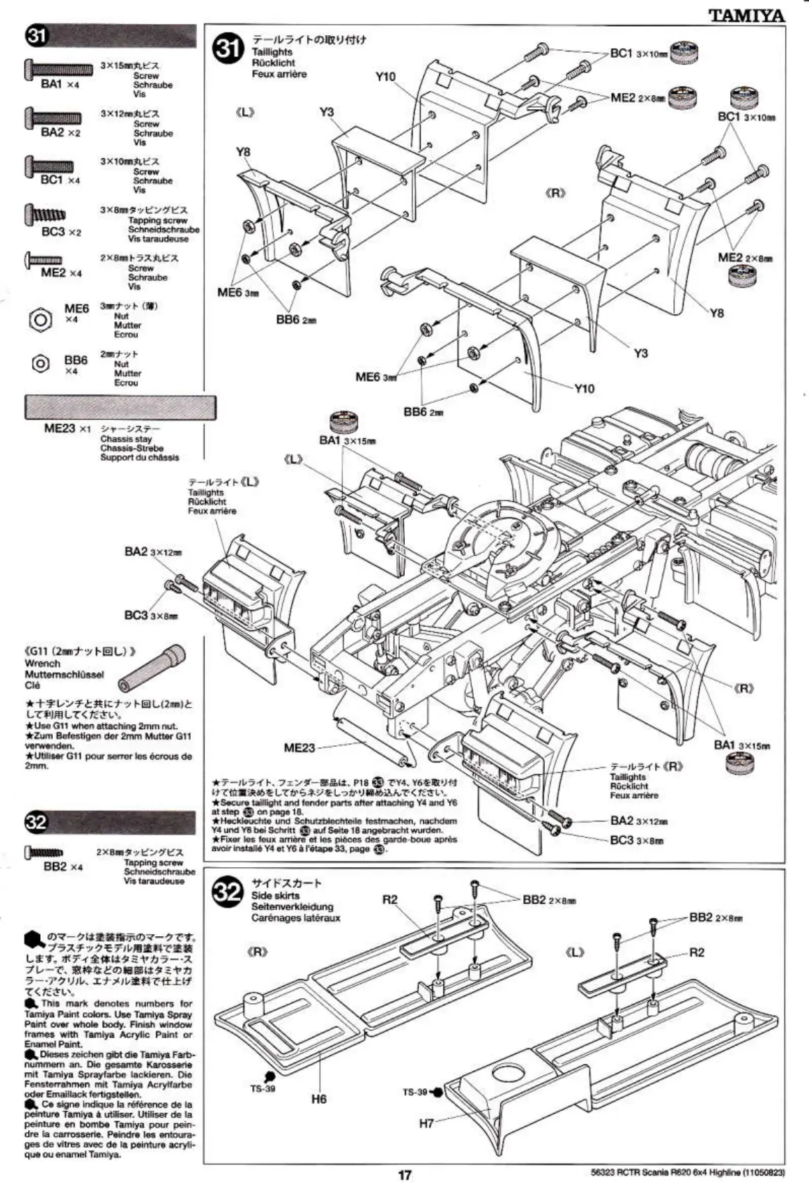 Tamiya 56323 - Taillight Installation; Taillights L Identification; Taillights R Identification