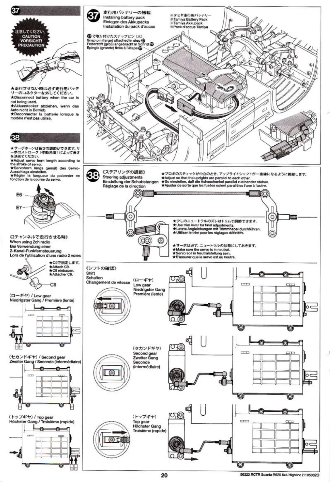 Tamiya 56323 - Battery Pack Installation; Steering Adjustment