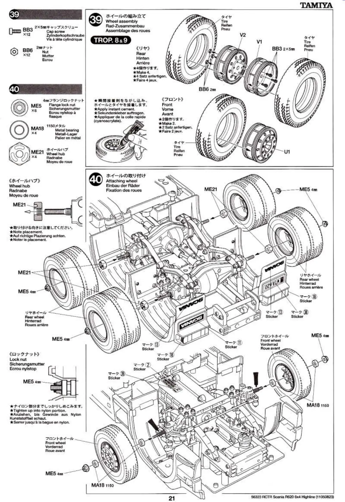Tamiya 56323 - Wheel Assembly; Rear Wheel Assembly; Front Wheel Assembly; Wheel Installation