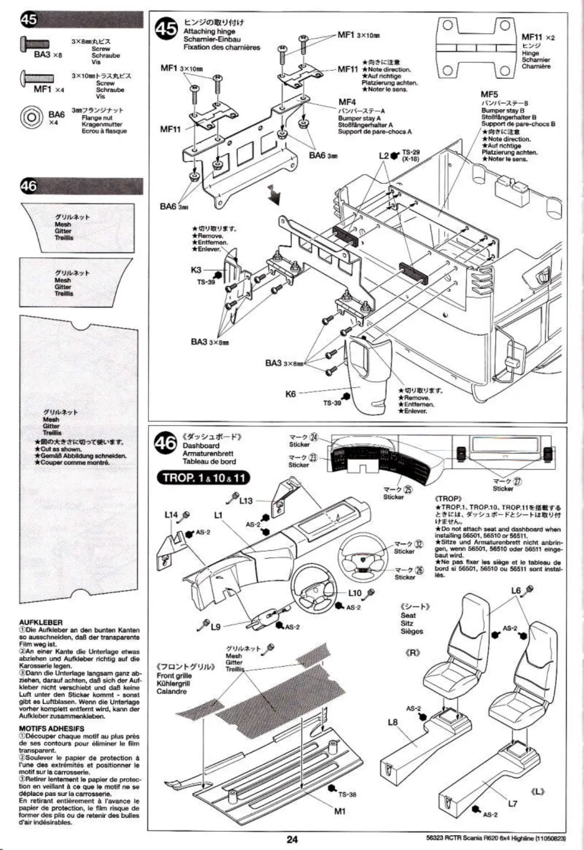Tamiya 56323 - Attaching Hinge; Dashboard