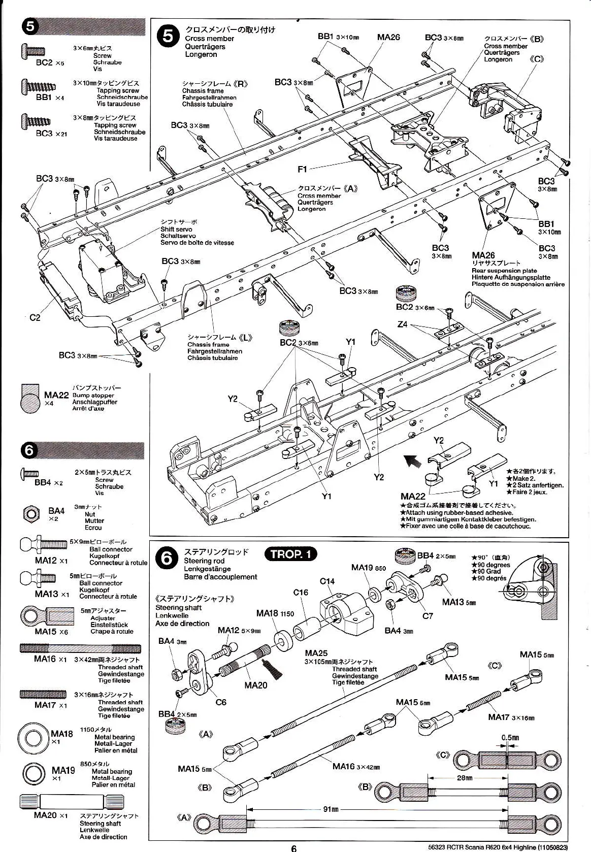 Tamiya 56323 - Cross Member Installation; Chassis Frame R Installation; Chassis Frame L Installation; Steering Rod Assembly