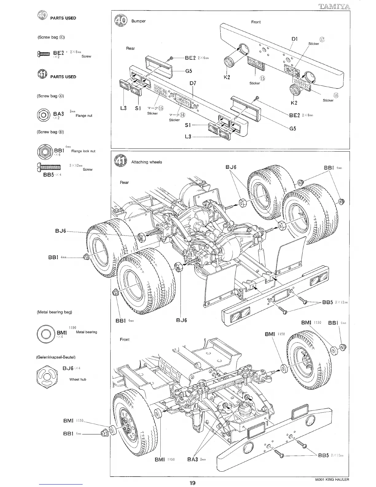 Tamiya 56336 - Bumper; Attaching Wheels