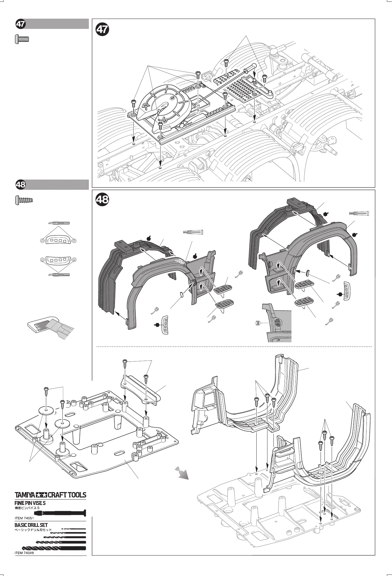Tamiya 56371 - Front Fender Assembly and Coupler Attachment; Coupler Attachment Procedure; Front Fender Assembly and Preparation