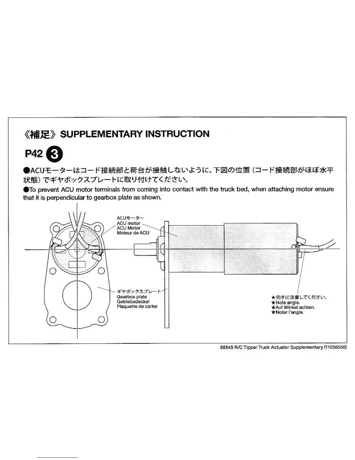 Tamiya ACU-01 - Supplementary Instruction: ACU Motor Mounting; ACU Motor Mounting Orientation
