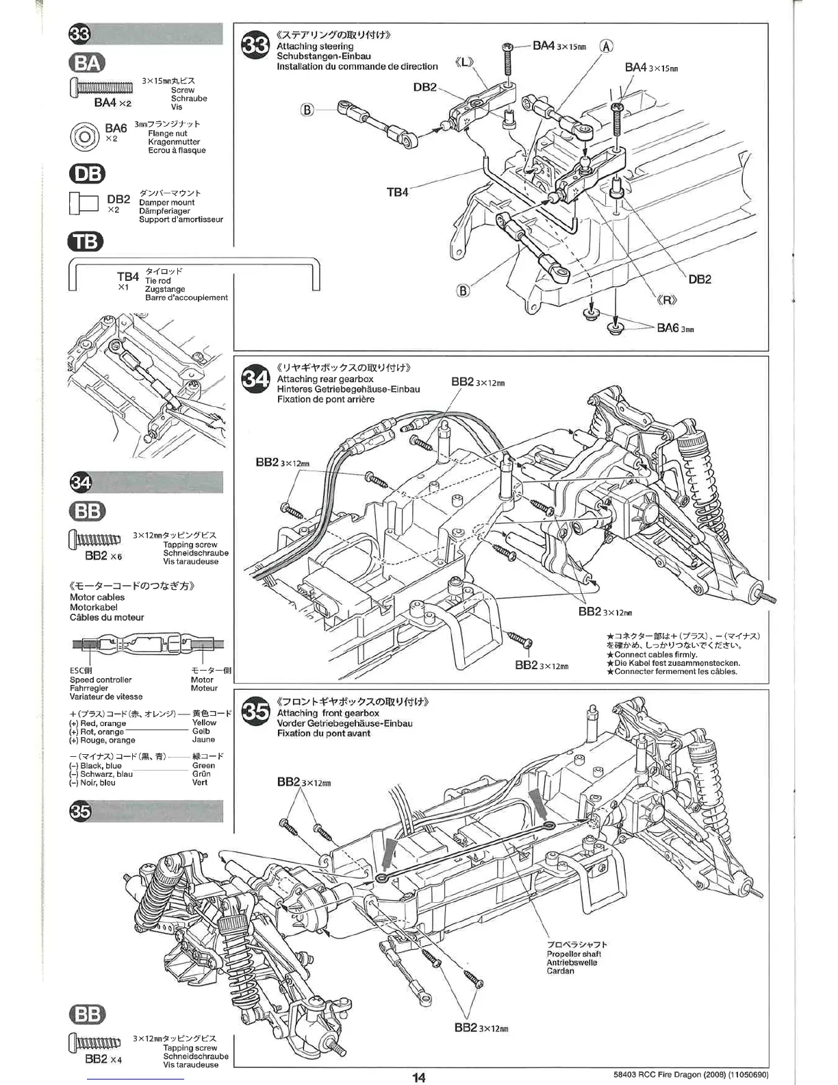 Tamiya Fire Dragon - Attaching Steering; Attaching Rear Gearbox; Attaching Front Gearbox
