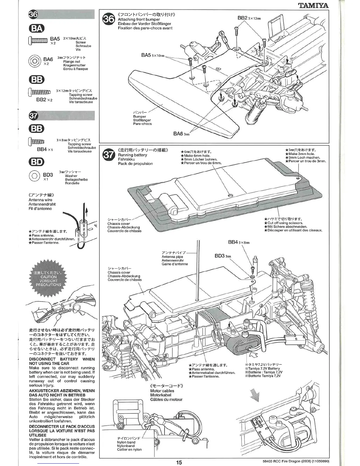 Tamiya Fire Dragon - Attaching Front Bumper; Running Battery
