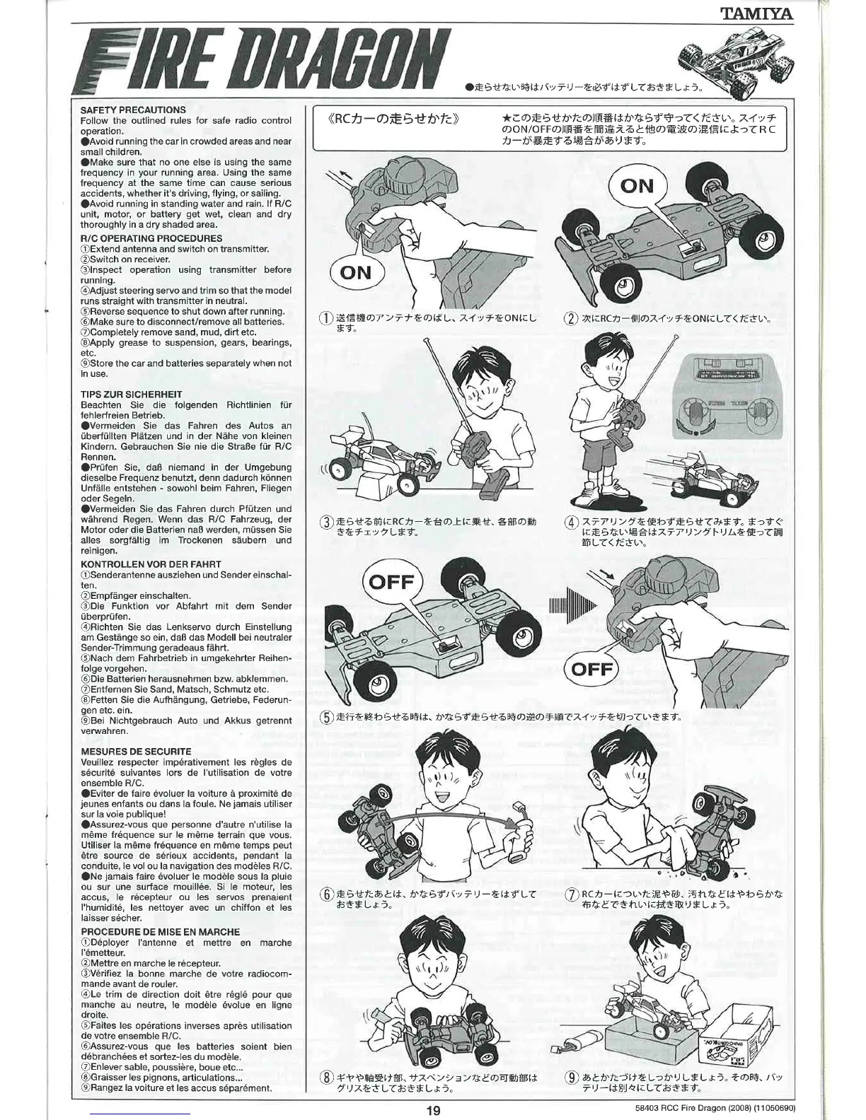Tamiya Fire Dragon - Safety Precautions; R.C Operating Procedures