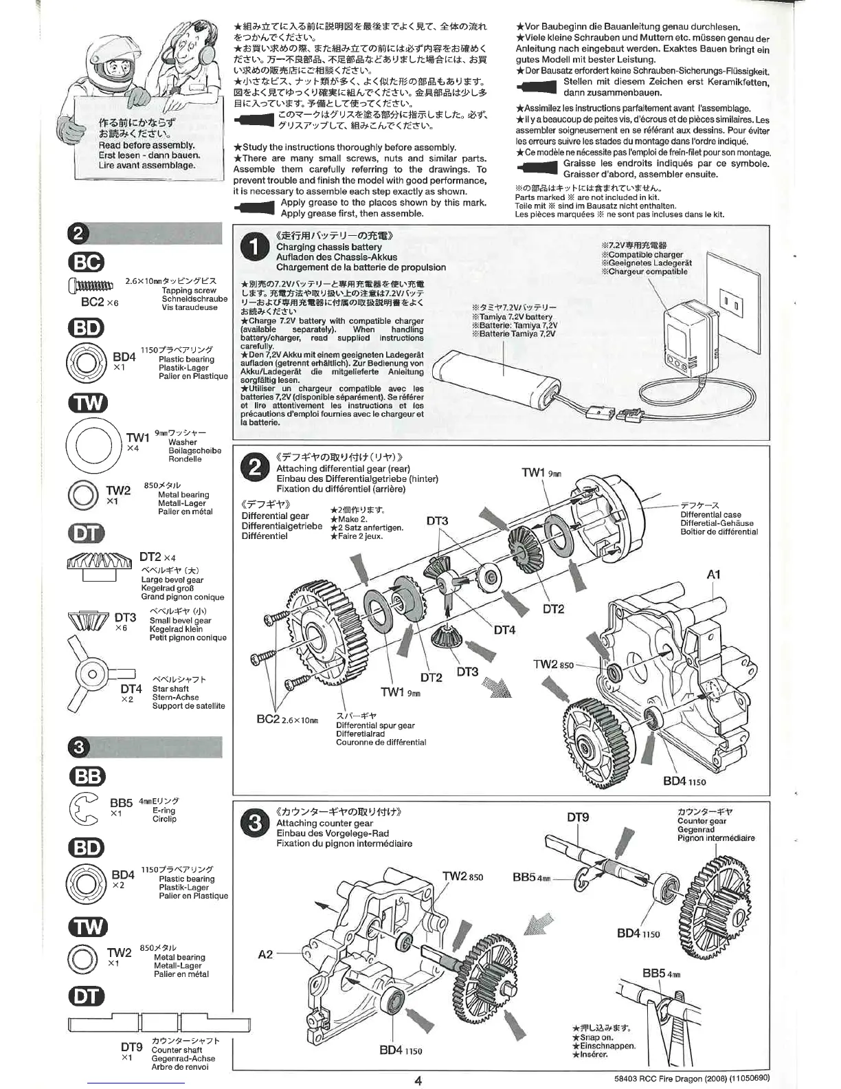 Tamiya Fire Dragon - Charging Chassis Battery; Attaching Differential Gear; Attaching Counter Gear