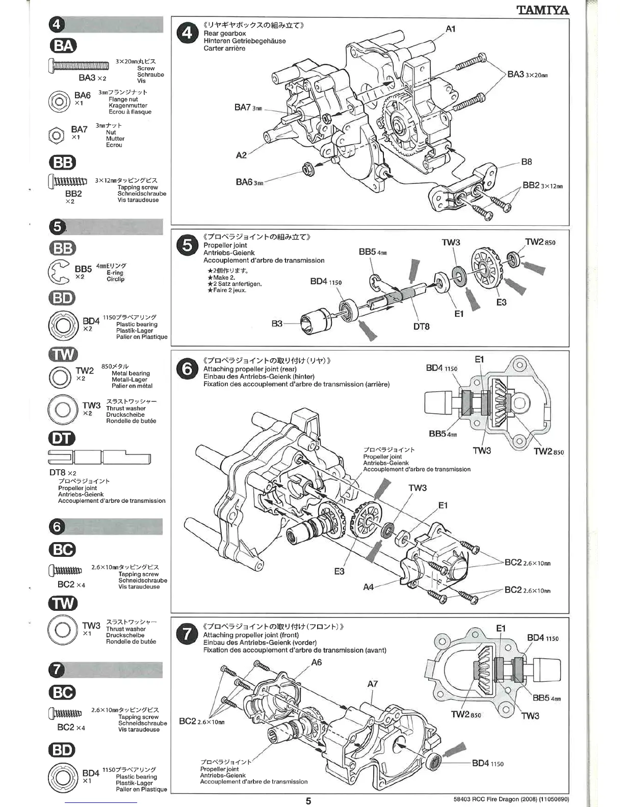 Tamiya Fire Dragon - Rear Gearbox; Propeller Joint; Attaching Propeller Joint