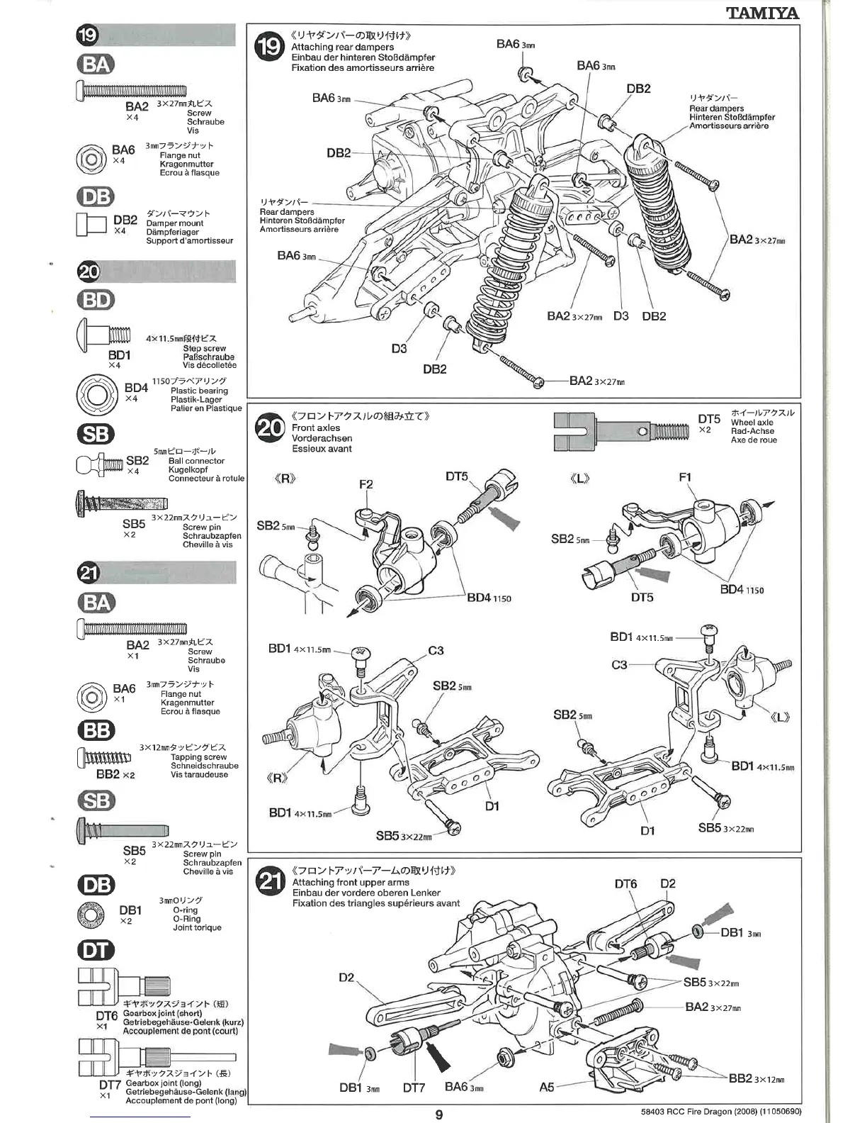 Tamiya Fire Dragon - Attaching Rear Dampers; Front Axles; Attaching Front Upper Arms