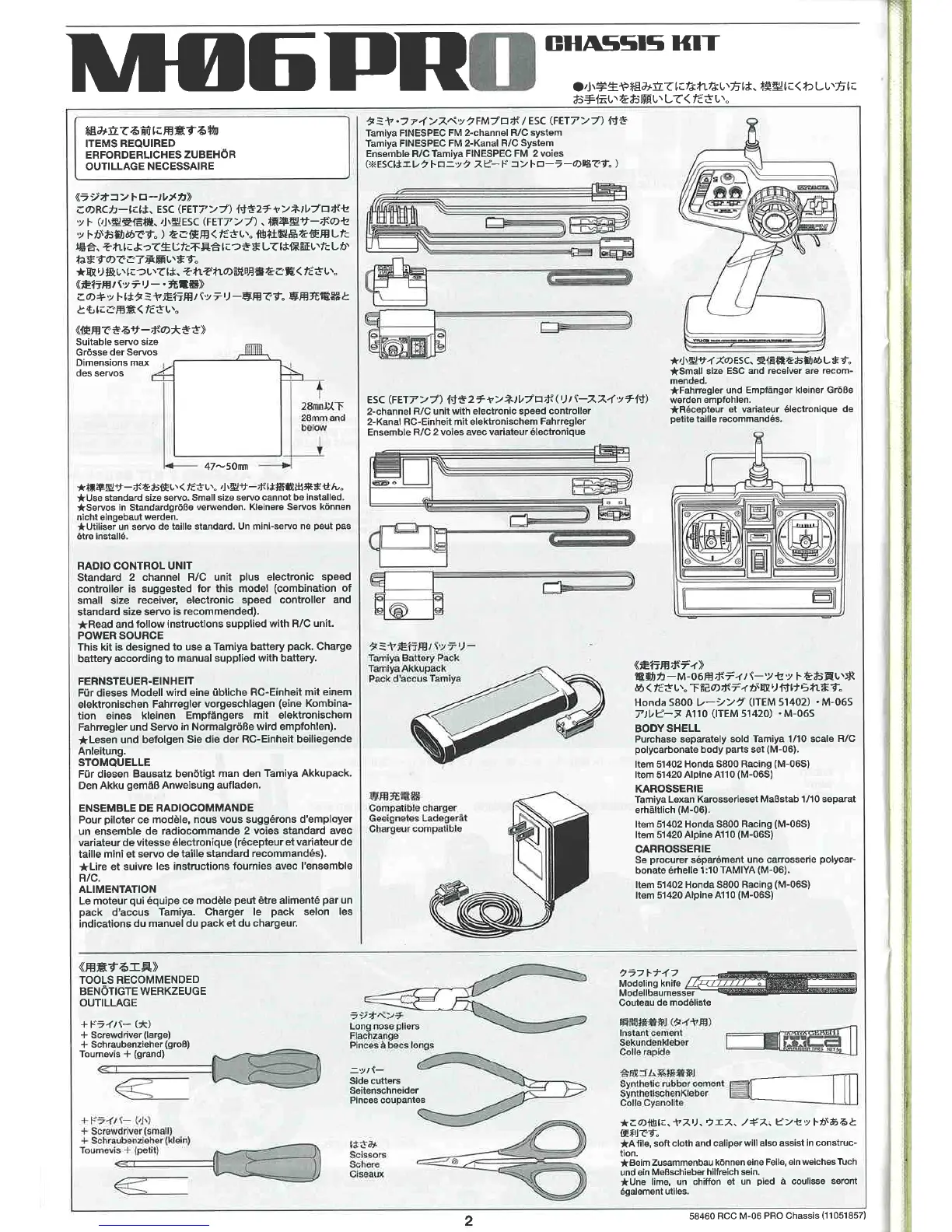 Tamiya M06PRO - Required Items; Radio Control Unit; Power Source; Tools Recommended