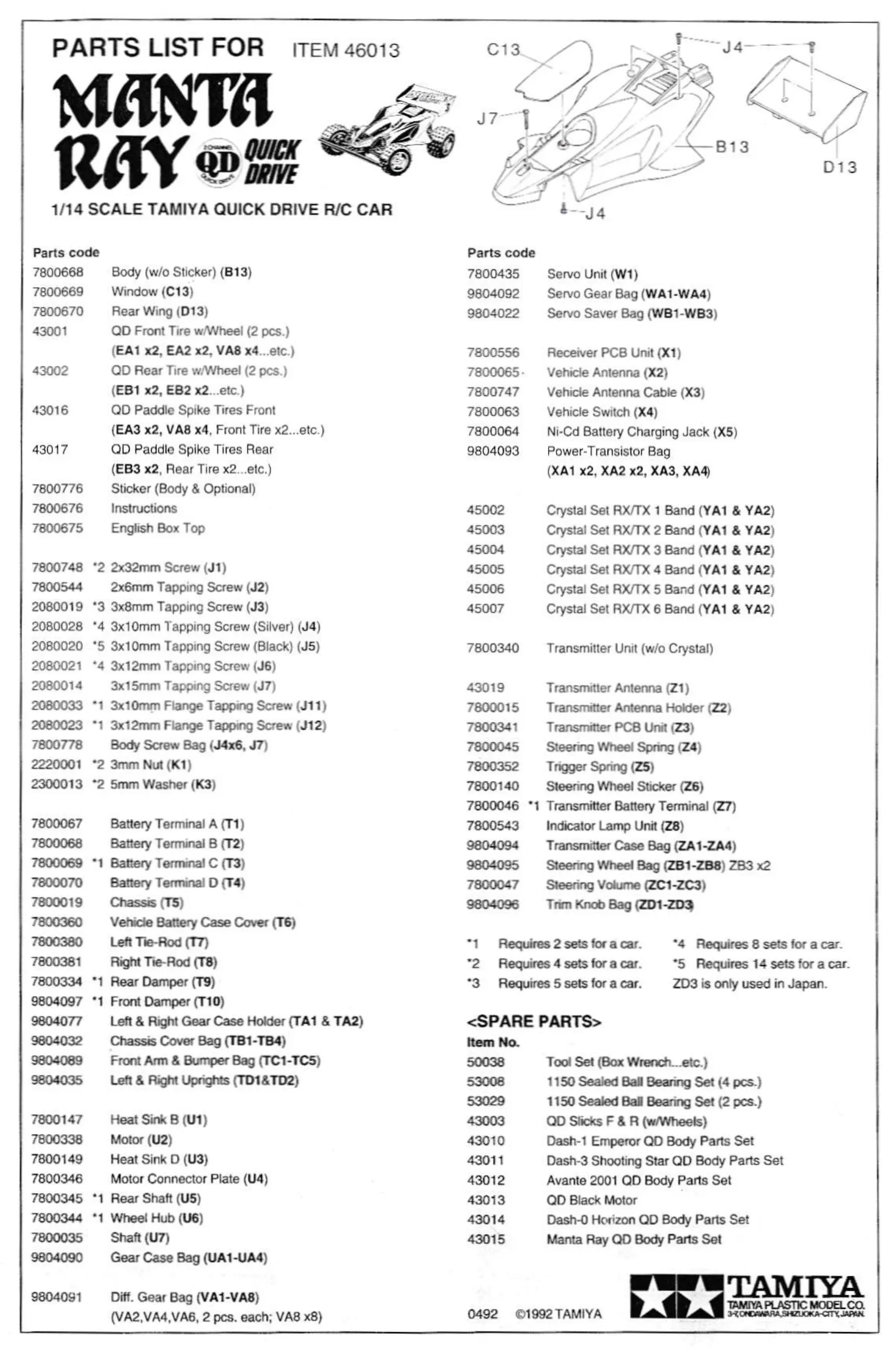 PARTS LIST FOR |TEM 46013