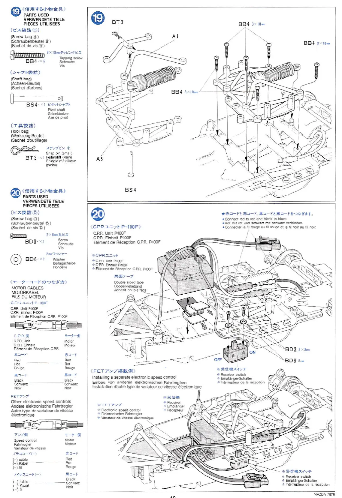 Tamiya MAZDA 787B - PARTS USED; Step 19; Step 20; 《FETアンプ搭載例》
