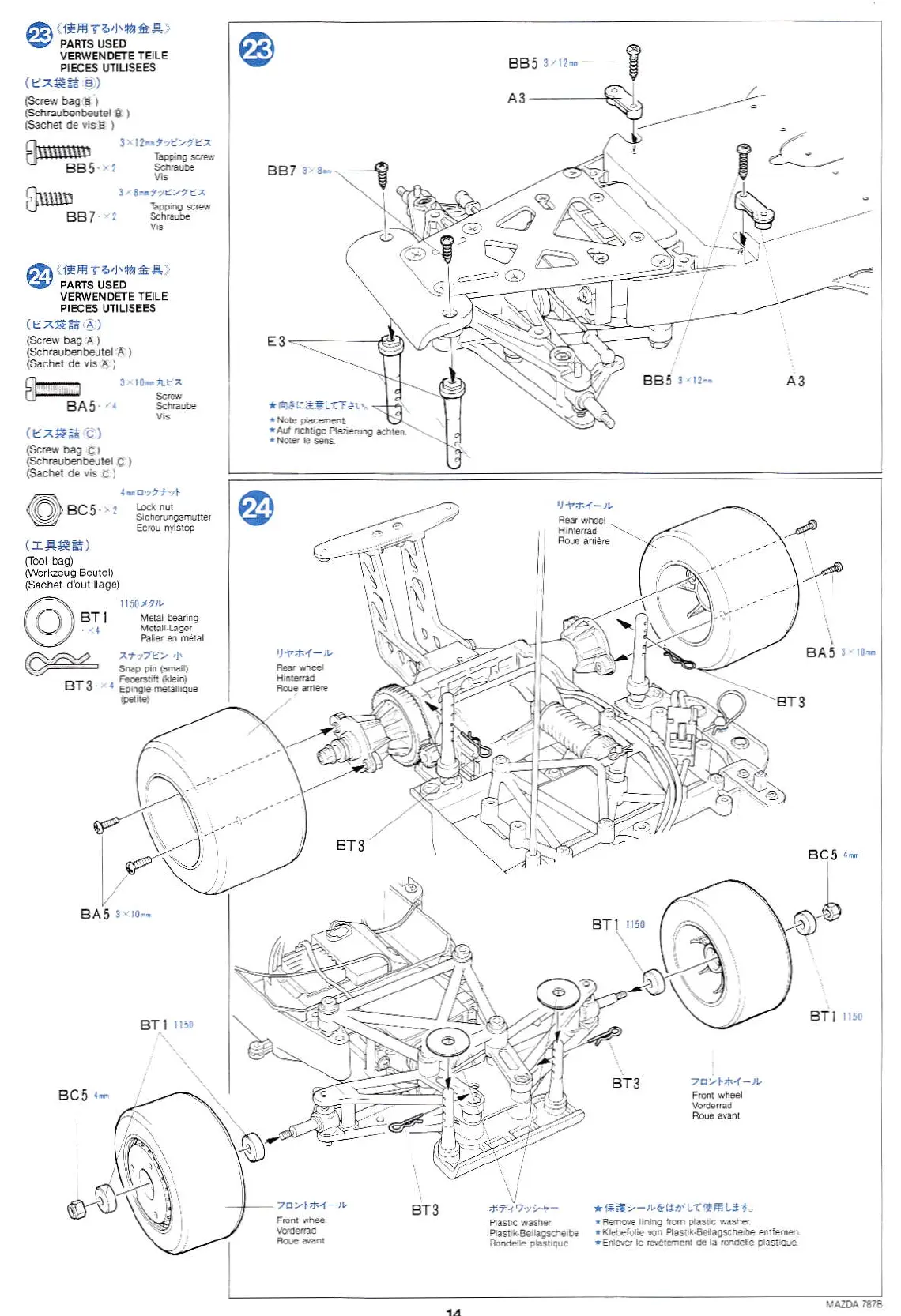 Tamiya MAZDA 787B - PARTS USED; Step 23; Step 24