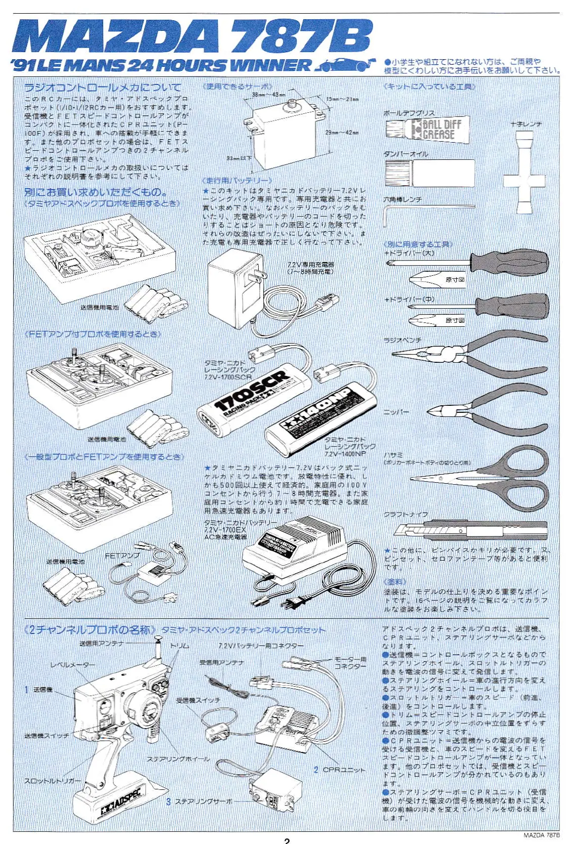 Tamiya MAZDA 787B - ラジオコントロールメカについて; 別にお買い求めいただくもの; 〈使用できるサーボ〉; 〈キットに入っている工具〉