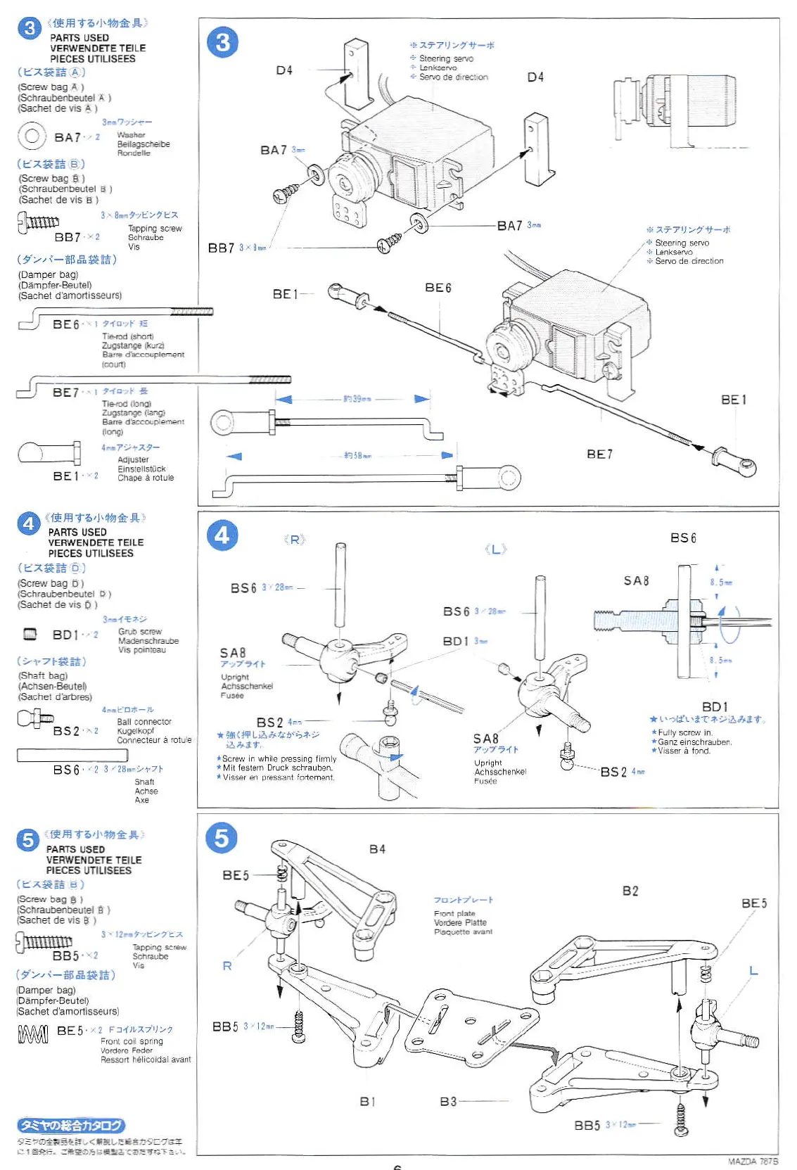 Tamiya MAZDA 787B - PARTS USED; Step 3; Step 4; Step 5