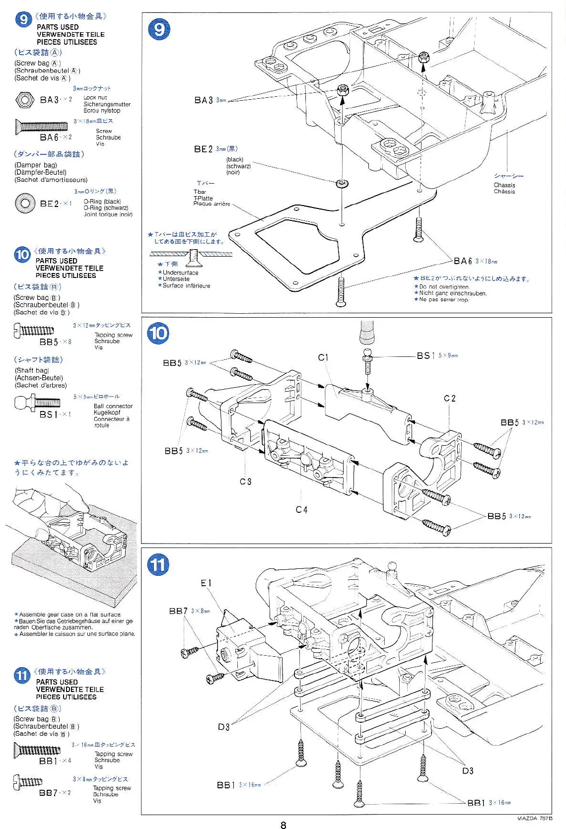Tamiya MAZDA 787B - PARTS USED; Step 9; Step 10; Step 11