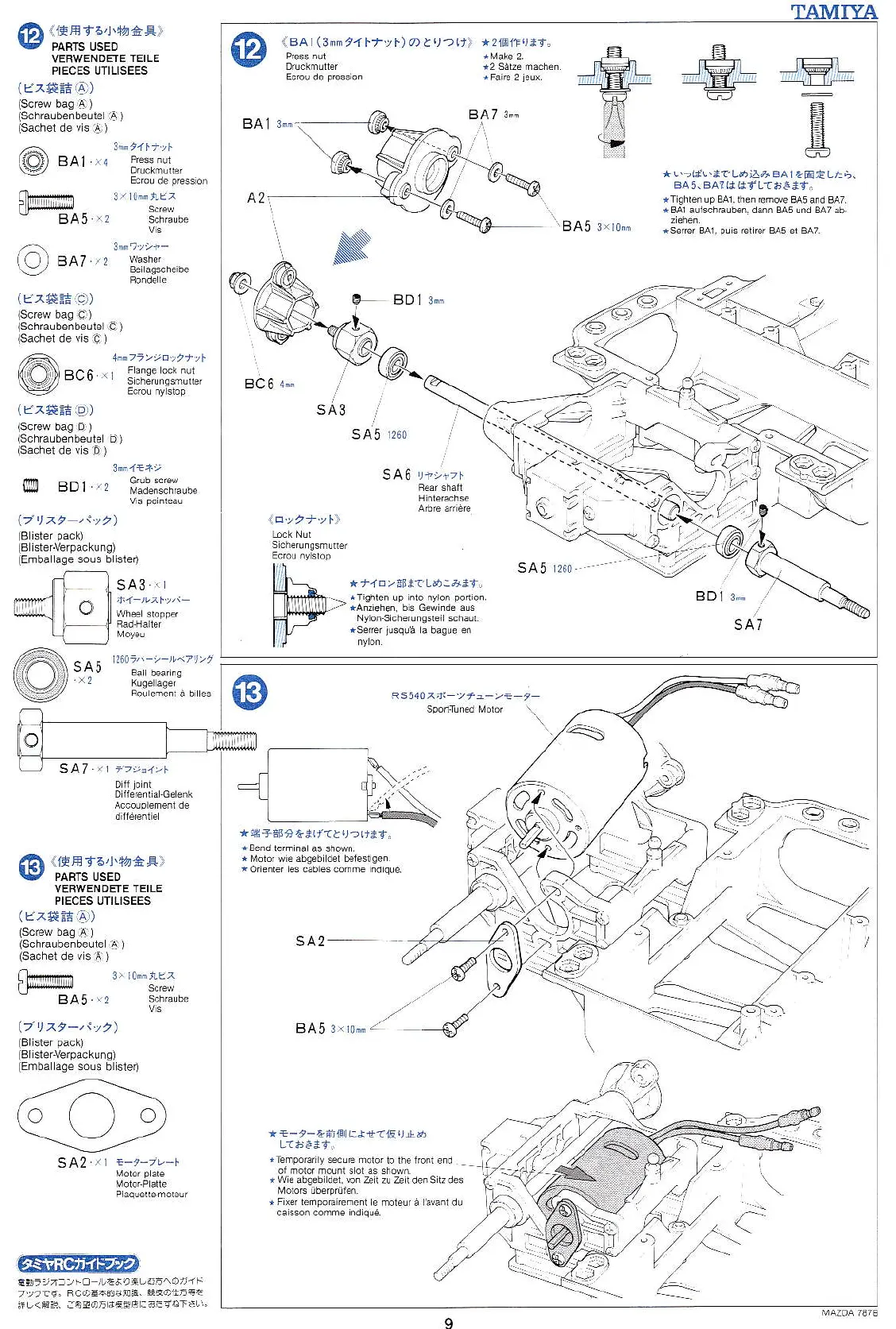 Tamiya MAZDA 787B - PARTS USED; Step 12; Step 13; 【タミヤRCガイドブック】