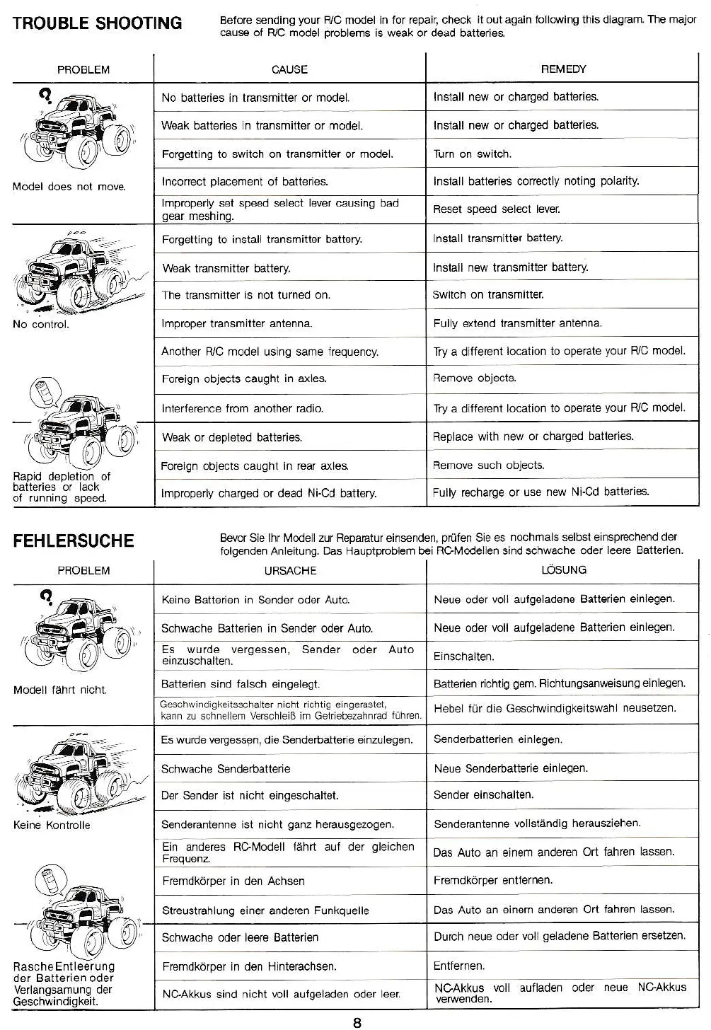 No battedes in transmitter or model.