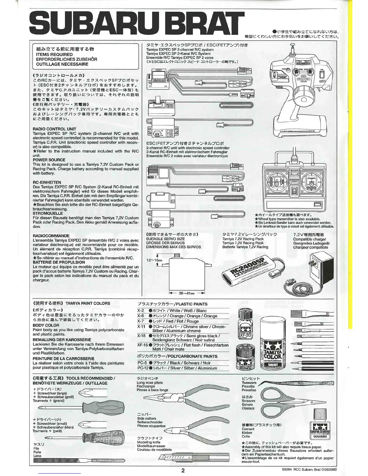 Tamiya Subaru Brat - Items Required for Assembly; Radio Control Unit; Power Source