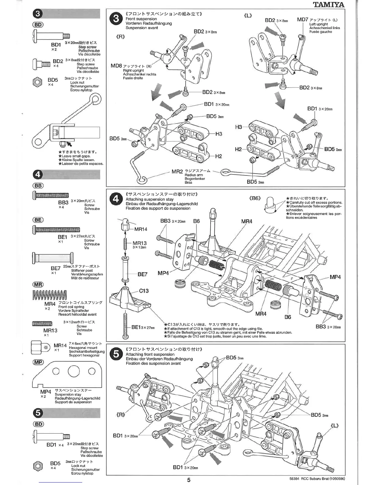 Tamiya Subaru Brat - Front Suspension Assembly; Attaching Front Suspension