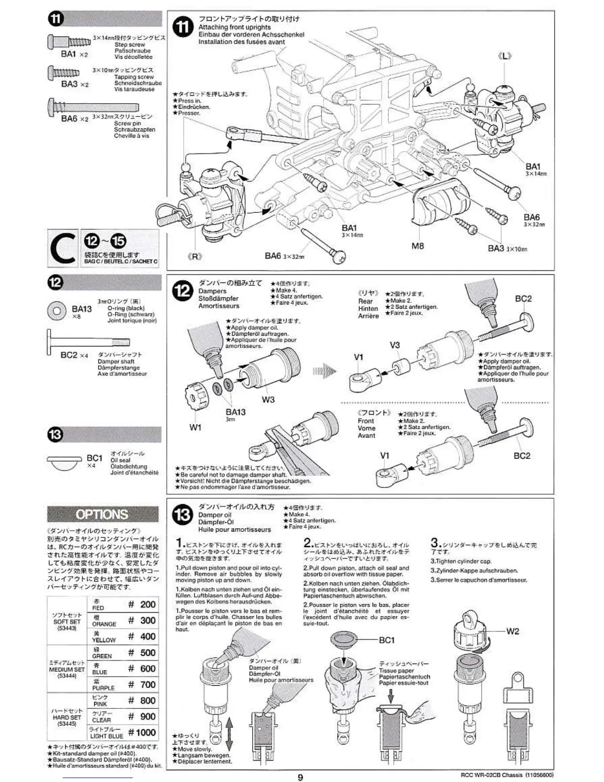 Tamiya WR-02CB - Front Uprights and Dampers; Attaching Front Uprights; Dampers Assembly; Damper Oil Filling and Options