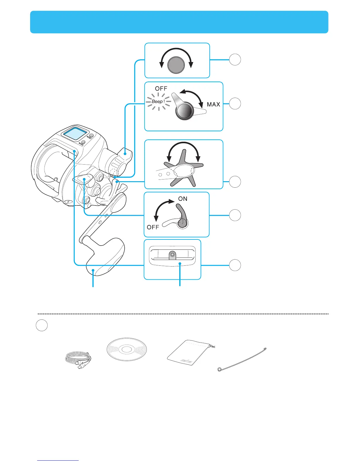 Manual CD-R Power cord Storage bag Levelwind threader
