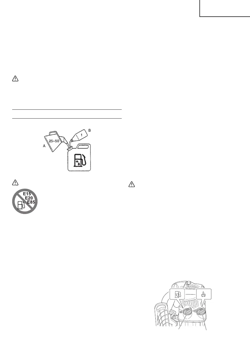 mélange essence/ huile. Veillez à une bonne aération