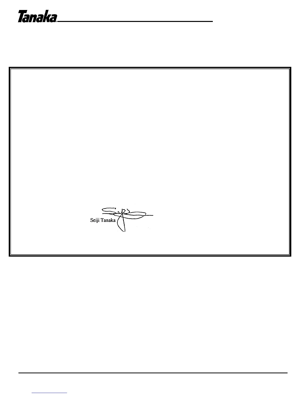 We, Tanaka Kogyo Co.,Ltd.,3-4-29 Tsudanuma,Narashino,Chiba,Japan