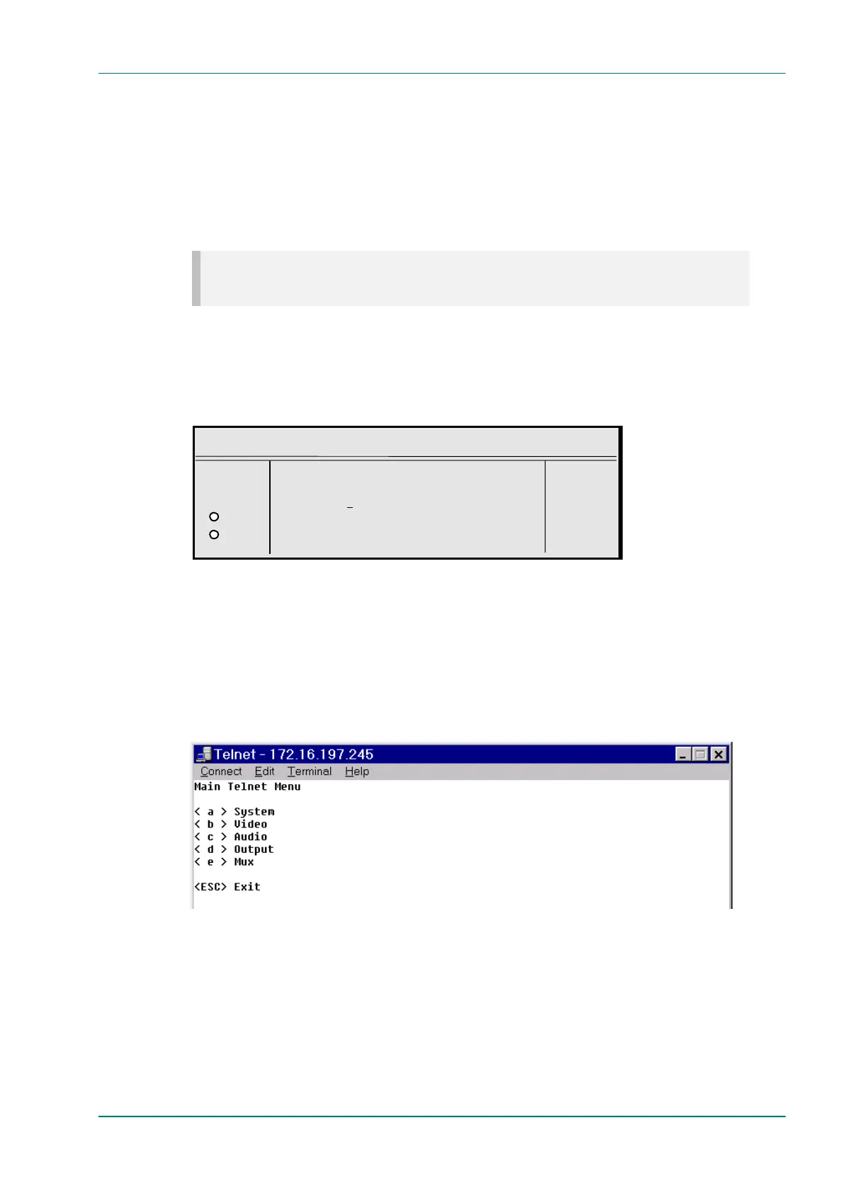 with the Encoder through Telnet: