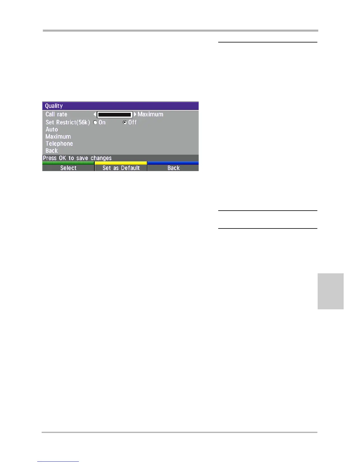 • Press the ‘Quality’ Quick Key when you are in the dial menu. The