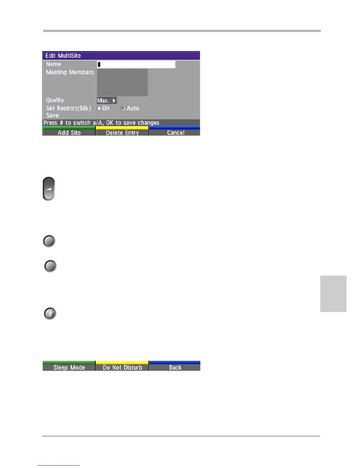 When Sleep Mode is activated, the monitors will be black. The system will still accept incoming calls.