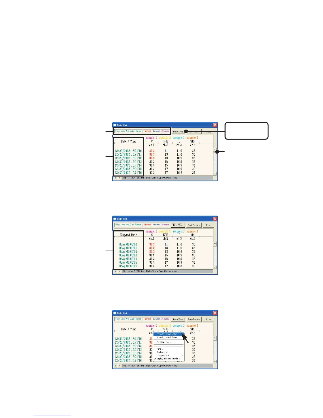 Scroll Bar : By dragging it up and down you can move to the data you want.