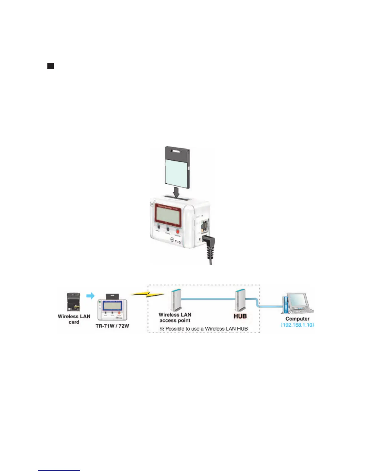 By inserting a Wireless LAN card into the TR-7W, it is possible to carry out