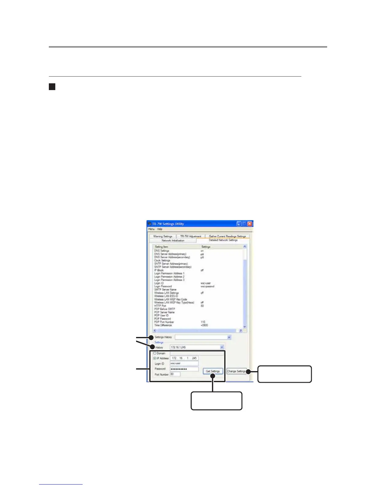 2. In the [Get Settings] Area, enter the information for the TR-7W you