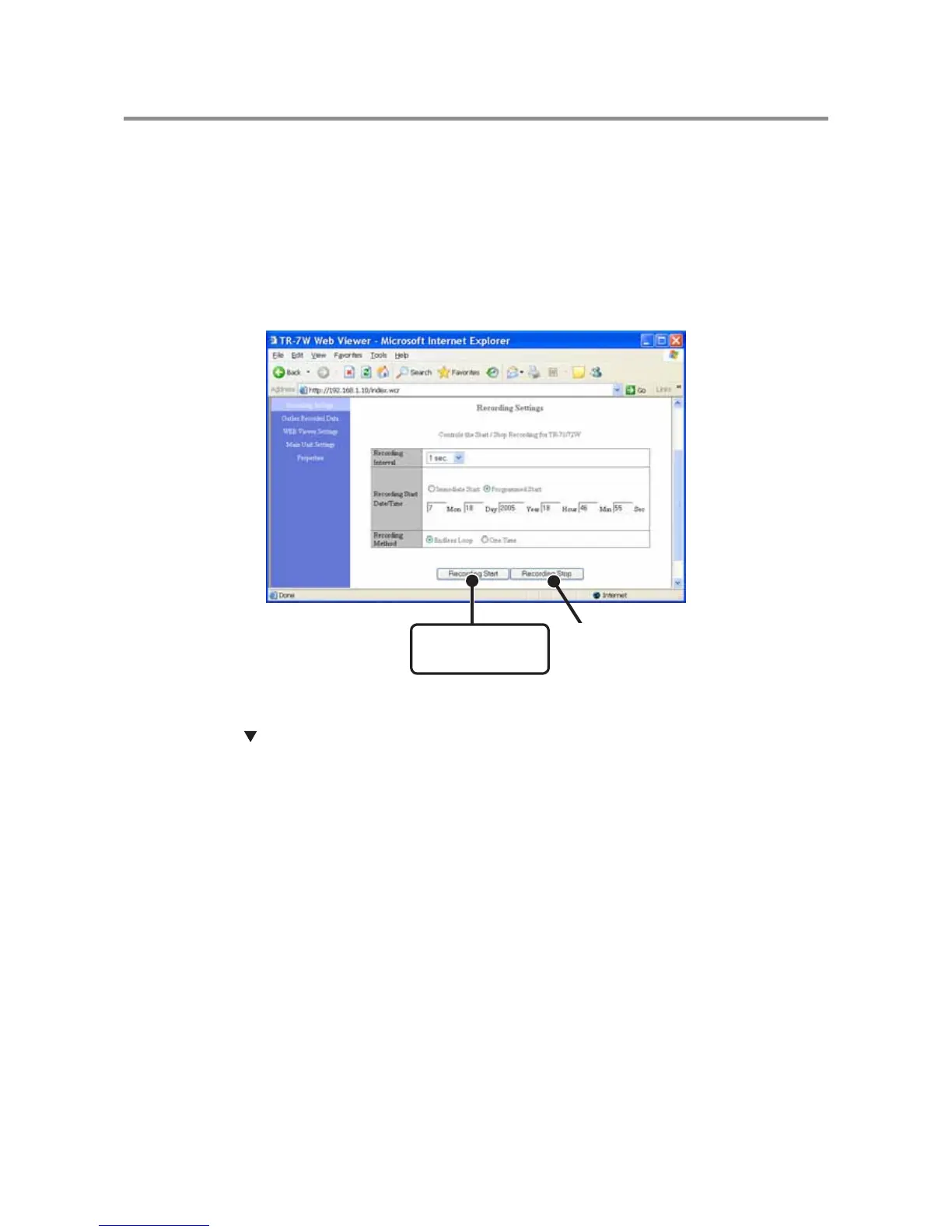 1. Open the Web Viewer for the TR-7W you wish to make settings for.