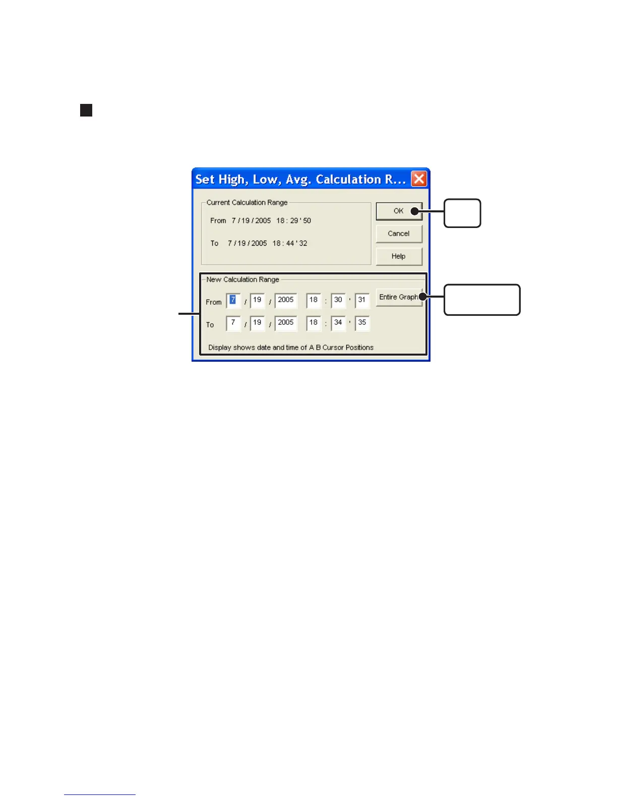 1. Set the calculation range in the [Set High, Low, Avg. Calculation].
