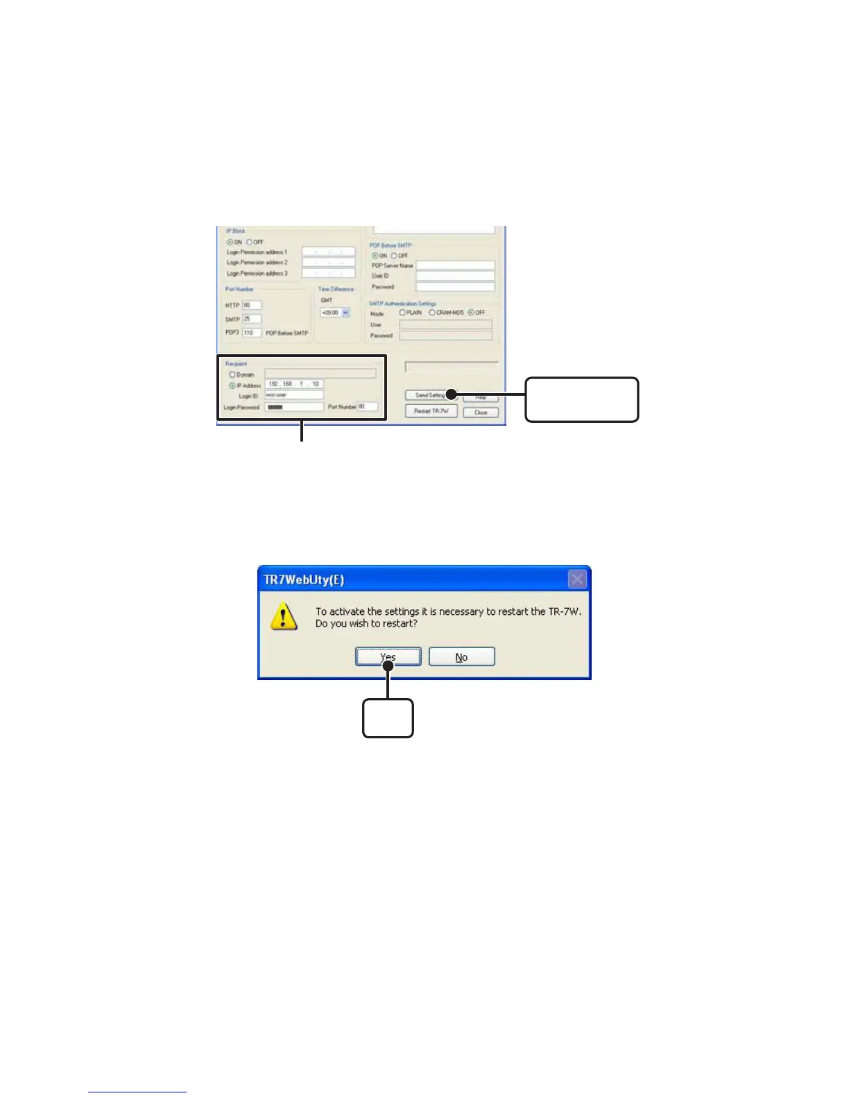 The new settings will not become valid until the TR-7W is restarted.