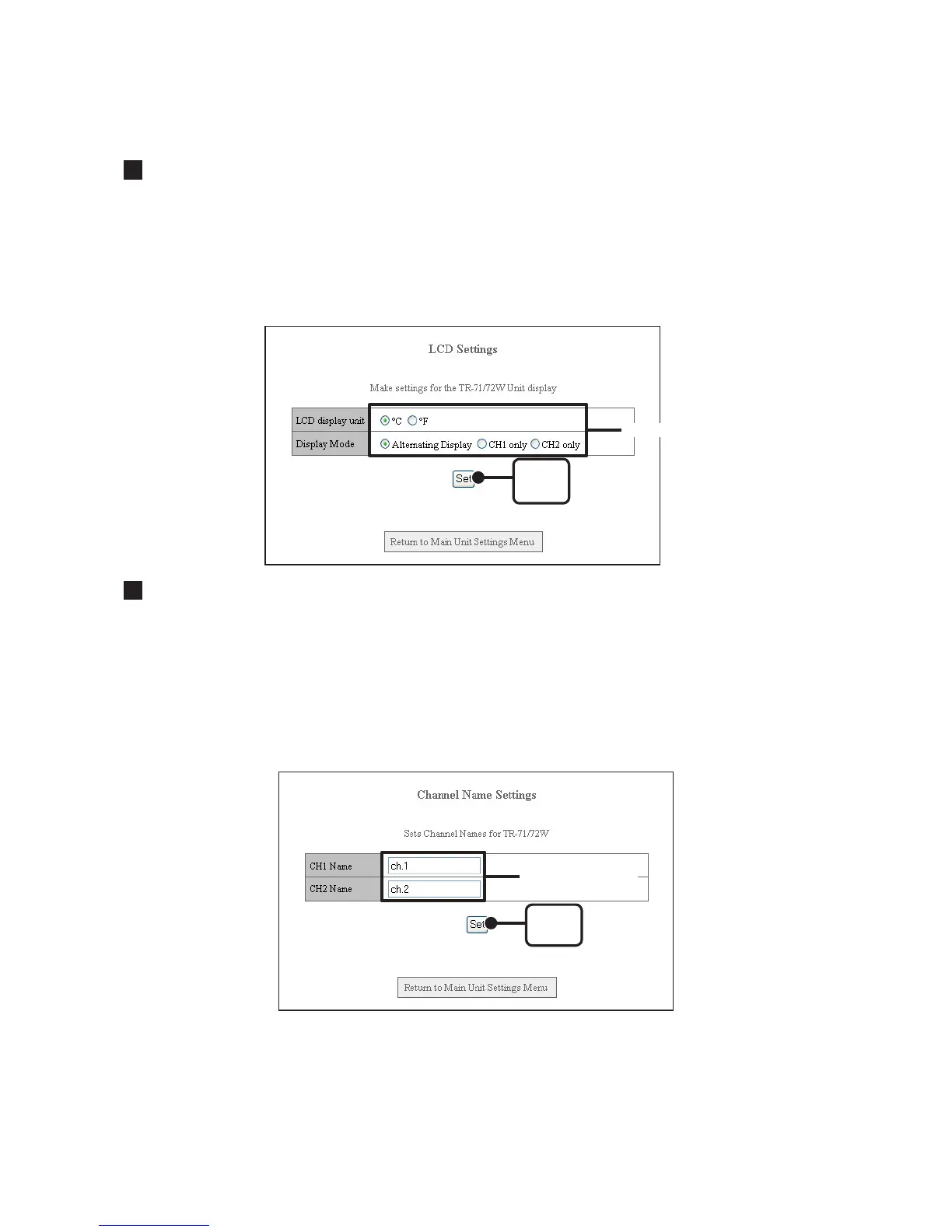 Make settings here for the TR-7W logger LCD display, including whether to view in °C or °F