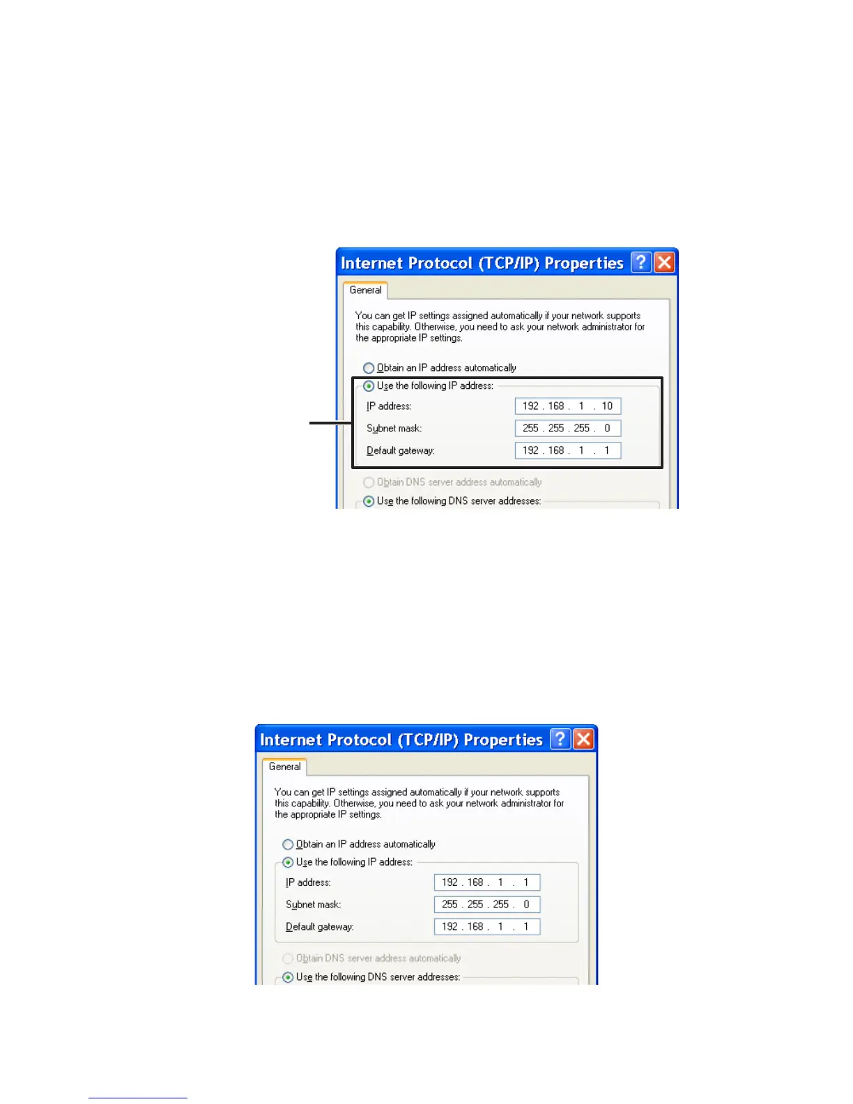 6. Enter "192.168.1.1" as the IP address and "255.255.255.0" as the