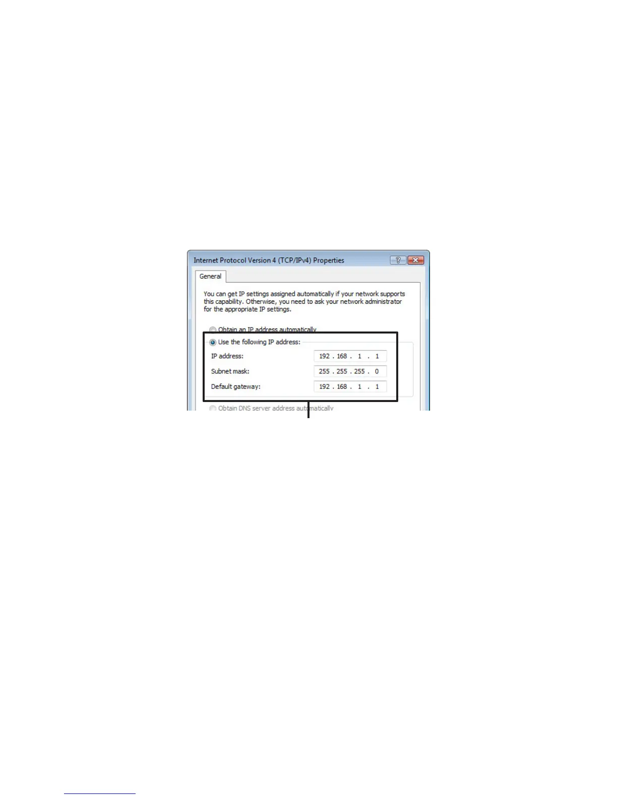 7. Enter "192.168.1.1" as the IP address and "255.255.255.0" as the