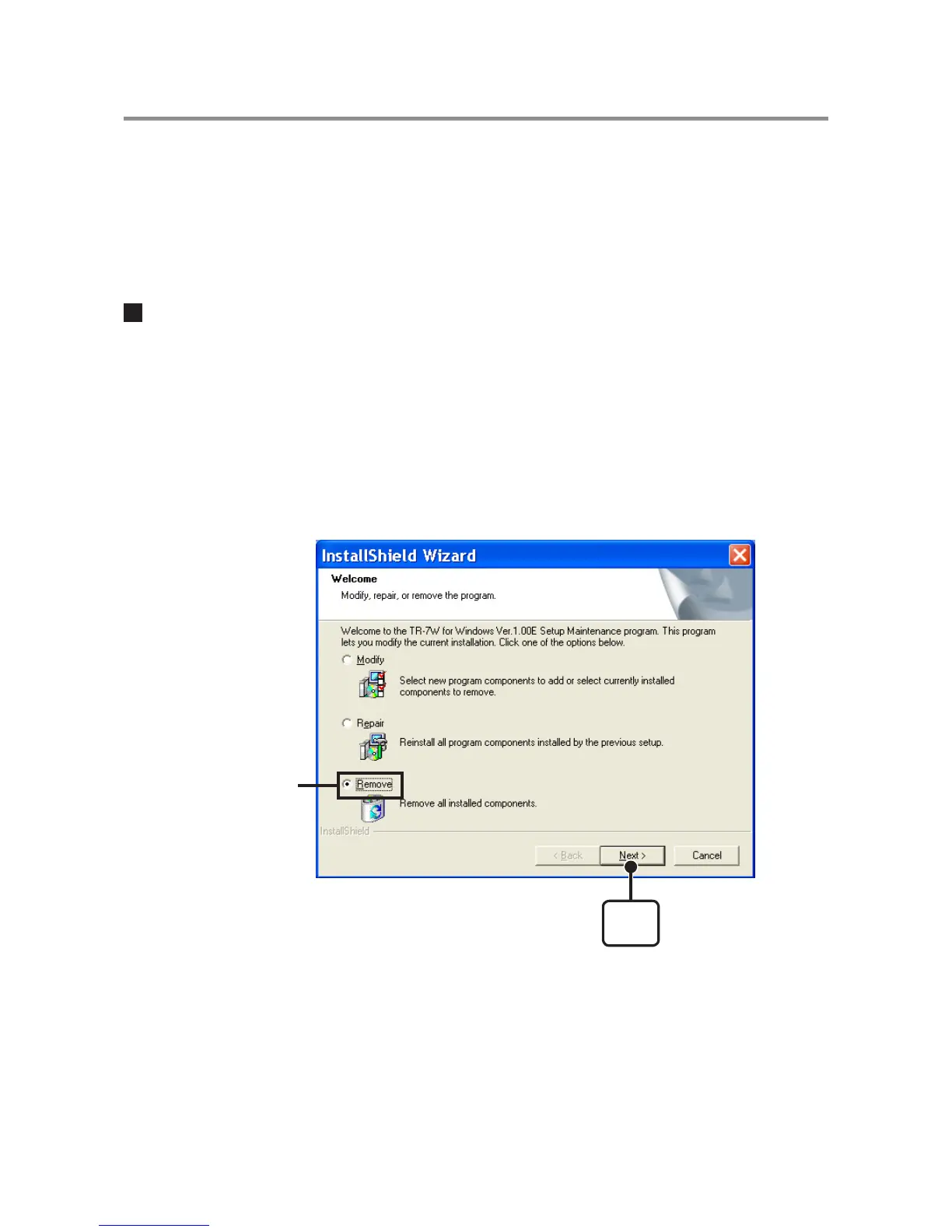 3. The "Install Shield Wizard" will appear. Check "Remove", and